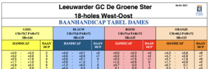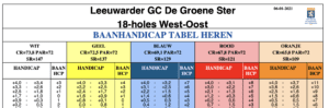 Je kunt je playing handicap voor onze golfbaan aflezen in onderstaande handicaptabellen.